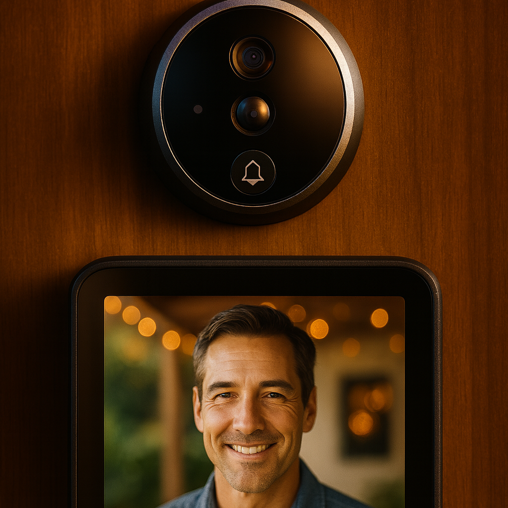 El timbre graba a quien llama y permite interacción en tiempo real, mientras que la mirilla digital sustituye la tradicional con pantalla interna y en algunos casos app móvil.